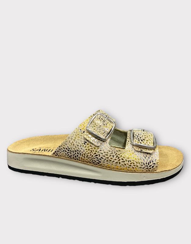 כפכף נוחות עור אמיתי 2 אבזמים תוצרת איטליה זהב