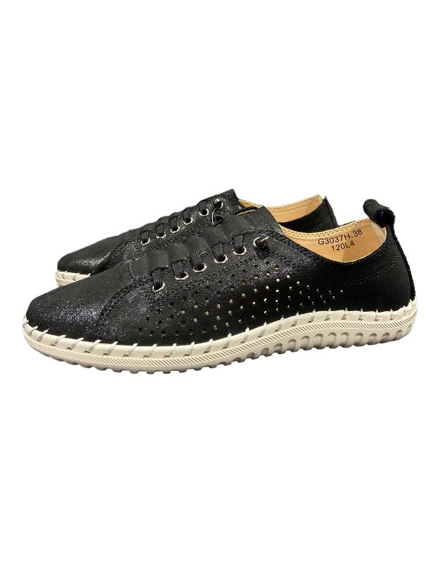 ליידי קומפורט נעל עור מחוררת רצועות גומי שחור