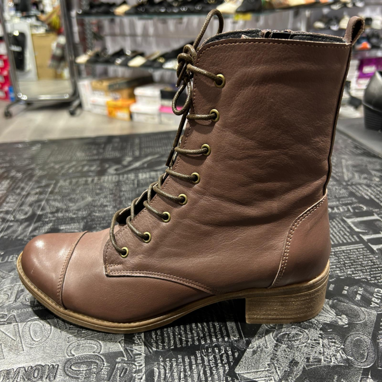 מגפון עור אמיתי שילוב שרוך ורוכסן עקב קטן חום