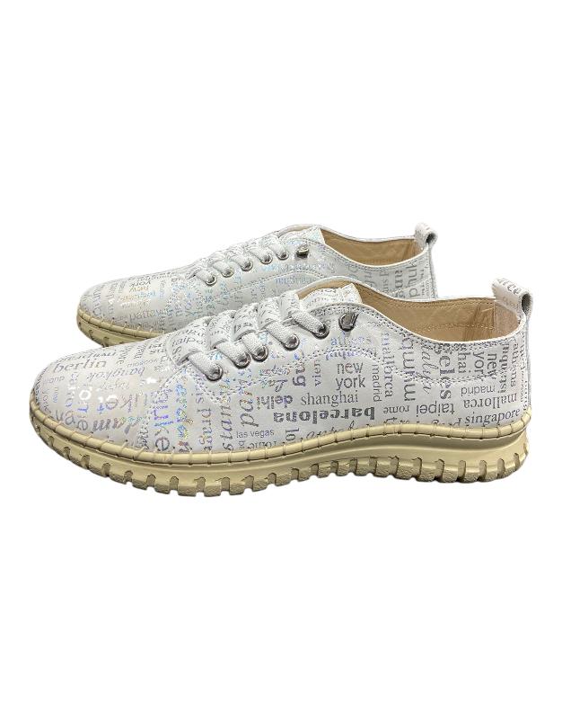 / סניקרס עור הדפס מיוחד לבן