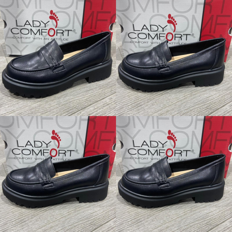 / ליידי קומפורט נעל מוקסין שחור עור