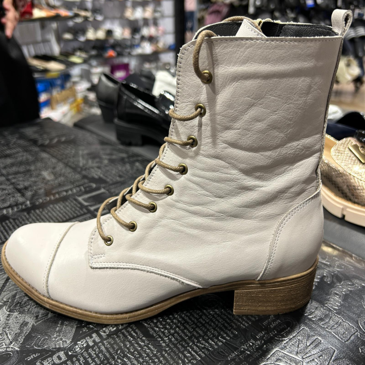 מגפון עור אמיתי שילוב שרוך ורוכסן עקב קטן לבן