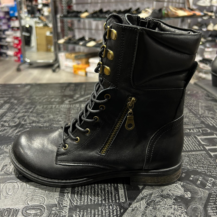 מגפון עור שרוך שילוב רוכסן שחור