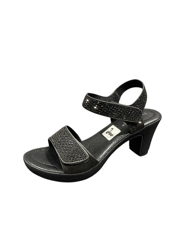/ פלייפוט סנדל מעוטר אבנים שקוץ קדמי שחור
